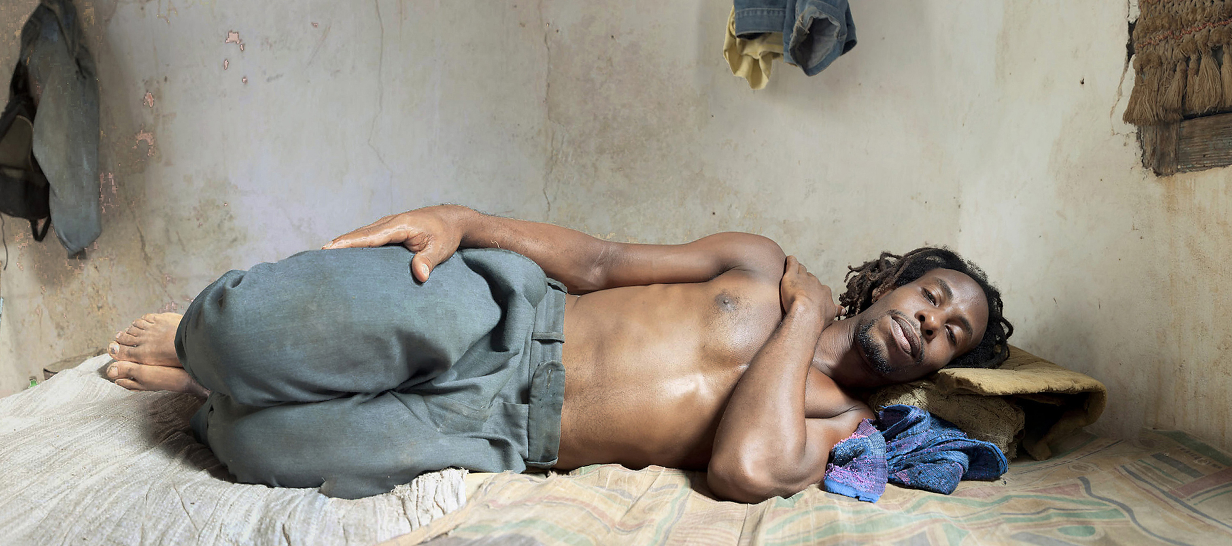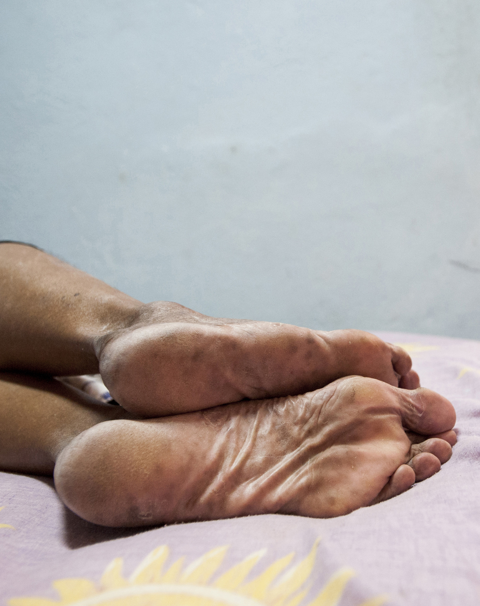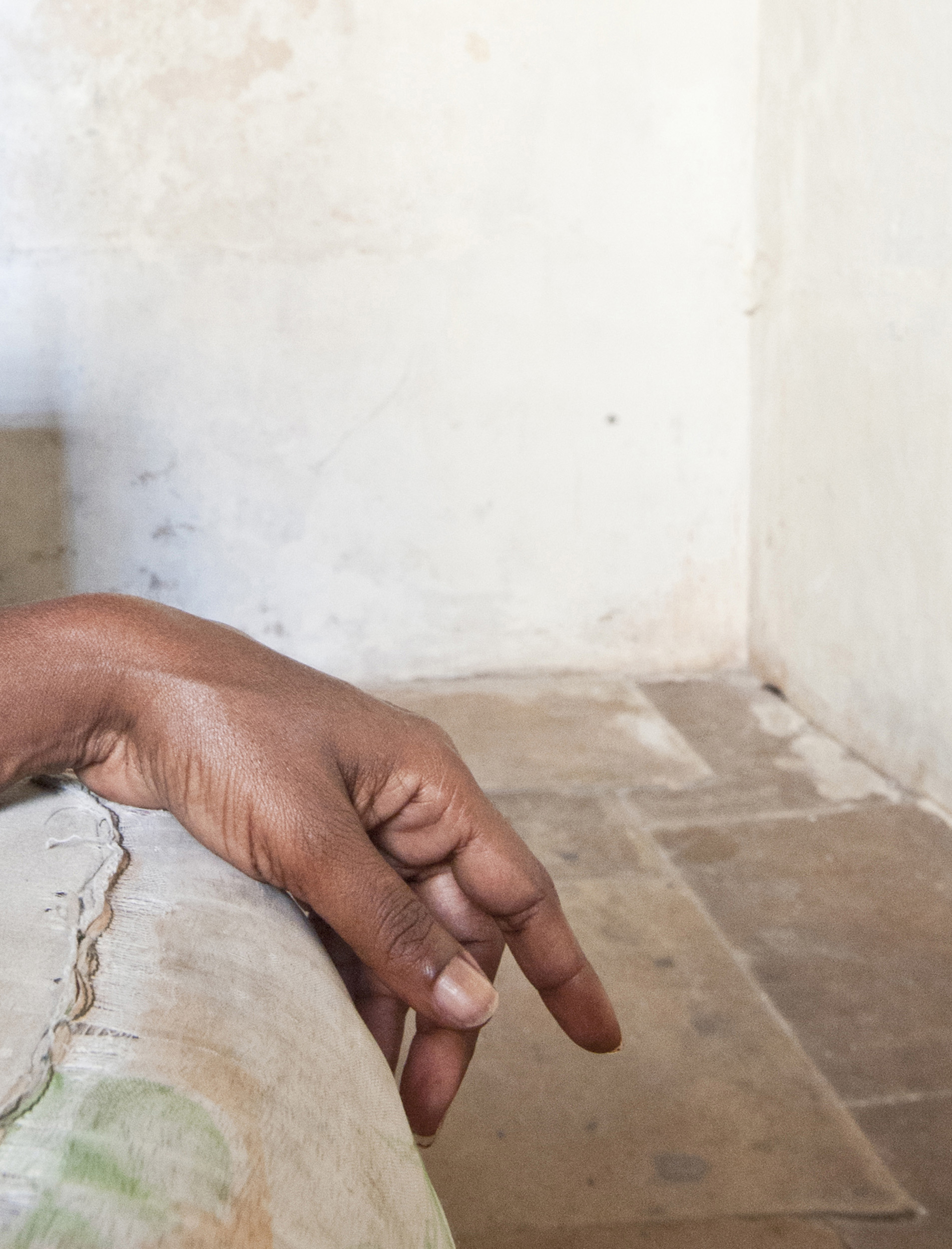 He sleeps on the couch with the same white cover and the same pillows as he did a year ago.